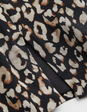 MКоротка спідниця, що облягає фігуру, виготовлена із віскози в анімалістичний принт. Завищена талія, застібається на потайну блискавку збоку. Короткий розріз спереду