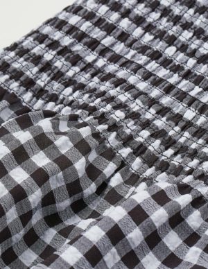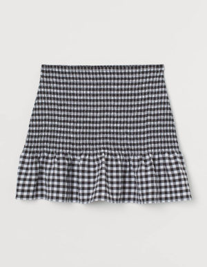 S XLКоротка тканинна спідниця зі зборкою на гумці зверху в клітинку. Еластична талія, знизу широка оборка