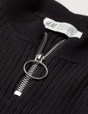 146/152Жилет в рубчик з круглим вирізом горловини на блискавці з кільцем із суміші віскози