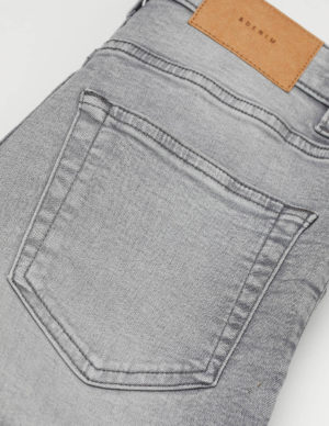 SДжинси з п’ятьма кишенями з еластичного праного деніму. Висока талія і дуже вузькі штанини. Застібка на блискавку та ґудзик. Shaping — денім із функцією стретч, підтримує і формує талію й сідниці, а також зберігає форму джинсів