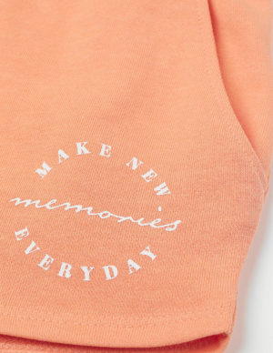 158 смШорти з еластичним поясом зі шнурком із легкої світшотної тканини. Бічні кишені та принт на одній штанині
