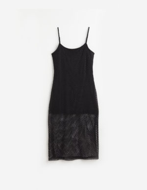XXLПриталена сукня-комбінація до литок, в’язана гачком. Вузькі регульовані бретельки та розріз з одного боку подолу. На підкладці зверху