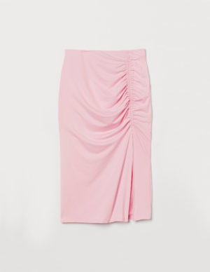 S L XLСпідниця до литок з м’якого трикотажу з прихованою гумкою на талії, зібраним швом і розрізом спереду