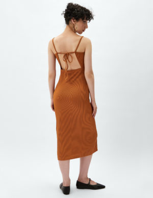 XS LСукня без рукавів з ребристого трикотажу завдовжки до литок. Відкрита спина з вузькою, закритою еластичною обробкою та вузькими бретелями, що зав’язуються ззаду