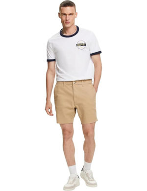 SШорти із бавовняної тканини, спереду дві прорізні кишені, застібаються на ґудзик та блискавку