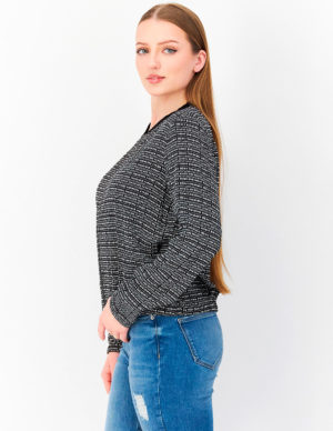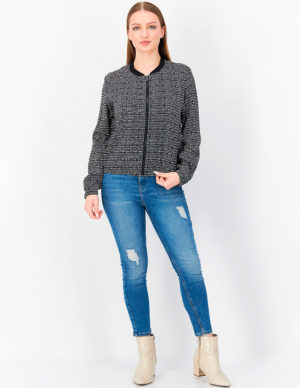 S MБомбер з довгим рукавом з круглим вирізом горловини із віскози з принтом, застібається на блискавку спереду
