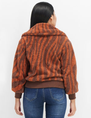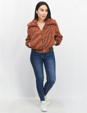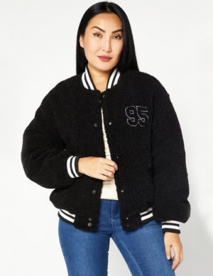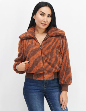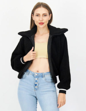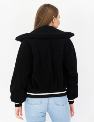 XS SБомбер з коміром із м’якого плюшевого матеріалу, спереду застібається на блискавку та має дві прорізні кишені