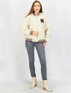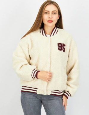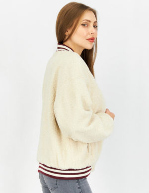 XS MБомбер з коміром із м’якого плюшевого матеріалу, еластичний низ та манжети рукавів. Спереду застібається на блискавку