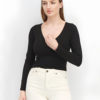 Укорочена блуза із бавовняної тканини, V-подібний виріз горловини, спереду декорована ґудзиками