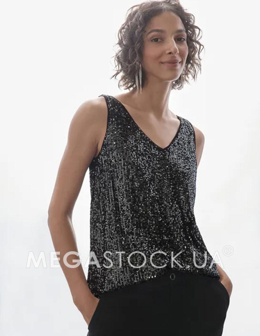 Блуза в пайєтки на широких бретелях з V-подібним вирізом горловини