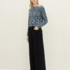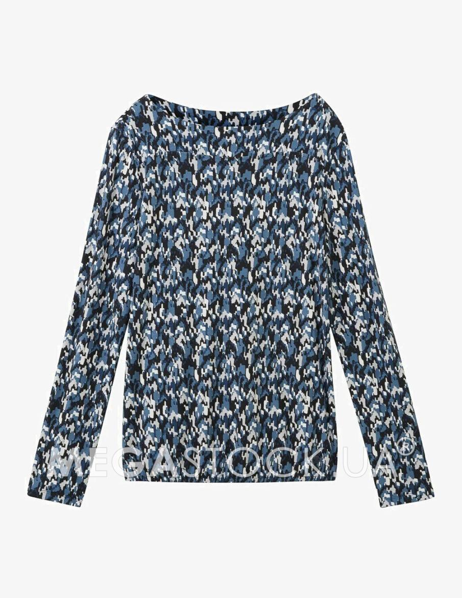 Блуза з довгими рукавами із віскози з принтом, виріз човник