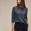 Блуза з V-подібним вирізом горловини із суміші віскози. Рукав три чверті з невеликим розрізом, ззаду подовжений