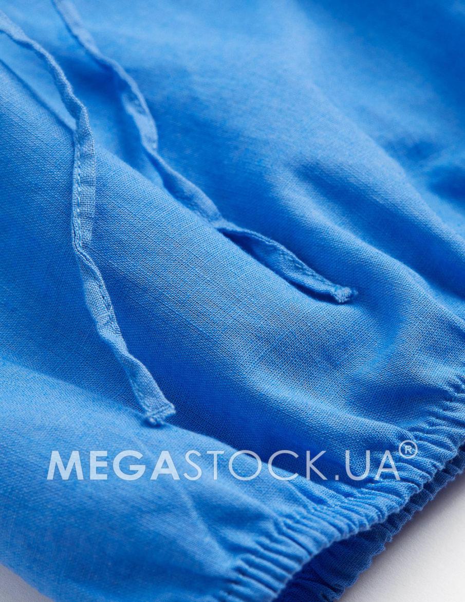 Блузка з повітряного переплетення льону та бавовни. Круглий виріз горловини з V-подібним вирізом та вузькими зав’язками зверху, короткі пишні рукави з закритою гумкою та закритою гумкою по низу. Без підкладки