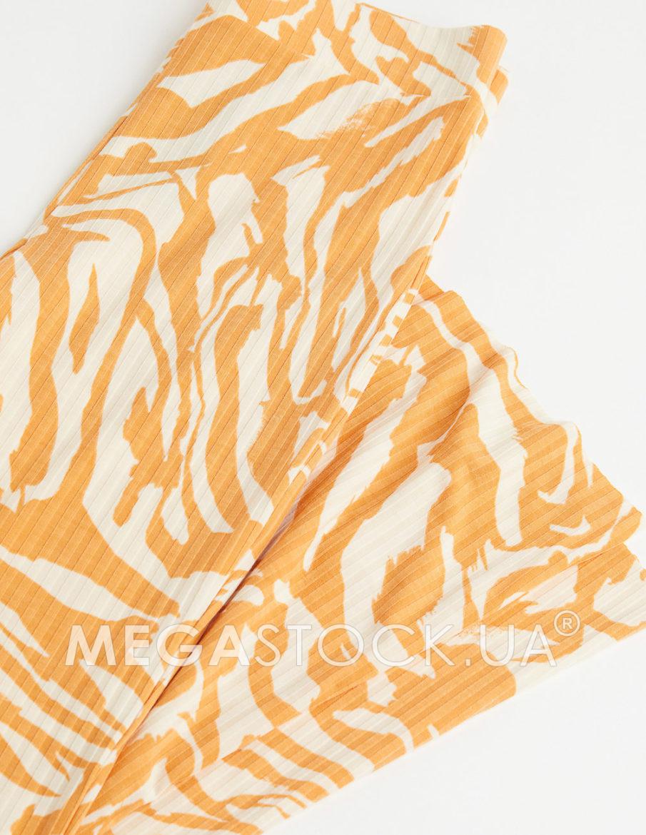 Штани з м’якого ребристого трикотажу. Висока еластична талія та розкльошені штанини з обрізними краями