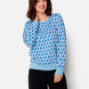 Футболка з V-подібним вирізом горловини із бавовняного трикотажу в рубчик. На грудях декоративне кільце з драпіруванням та два невеликі розрізи