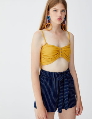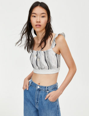 Футболка в смужку із бавовняного трикотажу, виріз горловини-човником