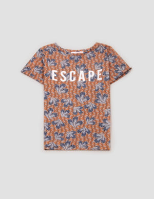 Футболка в смужку із бавовняного трикотажу, виріз горловини-човником