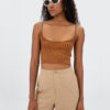 Кофта з глибоким прямокутним вирізом горловини із бавовняного трикотажу в рубчик. Застібається на ґудзики спереду