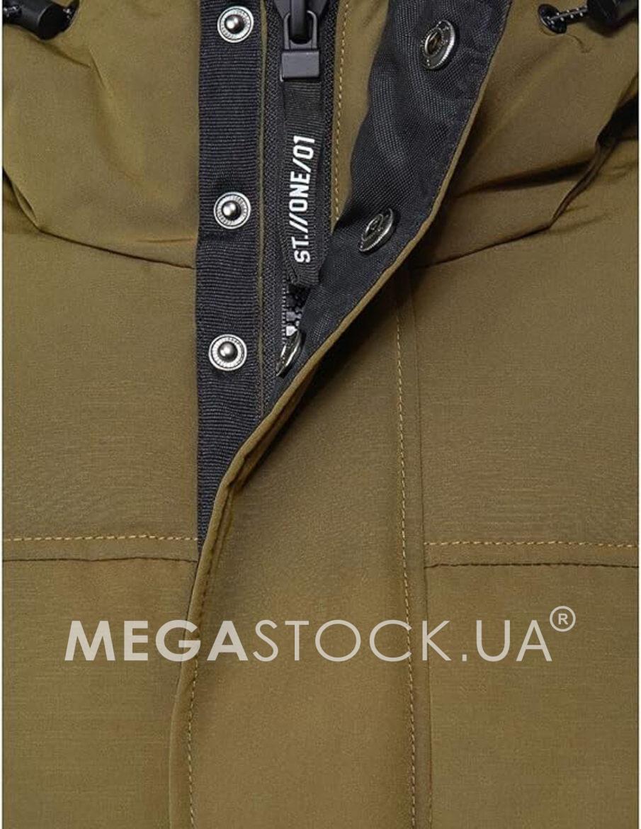 Утеплена куртка з високим коміром, капюшоном та довгими рукавами. Застібається на приховану блискавку та кнопки спереду, має дві діагональні кишені спереду із застібкою на блискавку