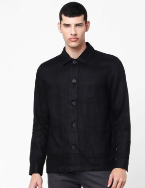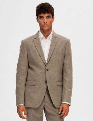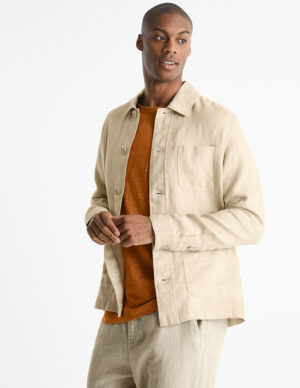 Піджак з коміром із суміші бавовни та поліестеру, має три накладні кишені спереду, застібається на ґудзики