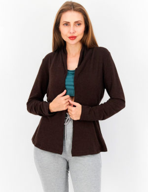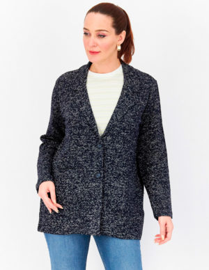 Піджак з класичним коміром із бавовняної тканини. Спущена лінія плечового шва, дві нагрудні кишені з клапаном із застібкою на ґудзики та дві прорізні бічні кишені. Спереду застібається на ґудзики, внизу регулюється шнурком
