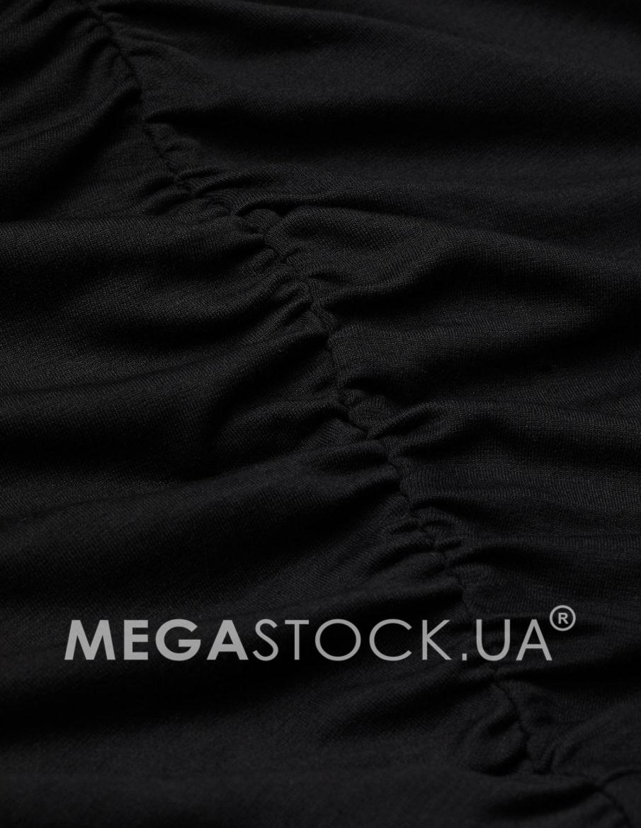 Коротка драпірована спідниця з м’якого трикотажу зі зібраним вертикальним швом спереду та ззаду. Спідниця має високу талію з прихованою гумкою