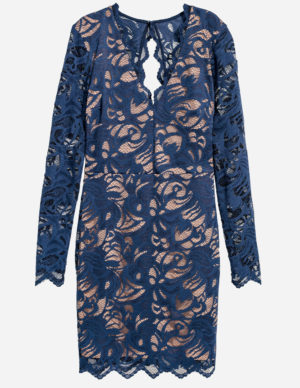 Коротка сукня прямого крою з тканого переробленого поліестеру з круглим вирізом горловини, короткими пишними рукавами з тонкою гумкою на манжетах, відкритою спиною та тонкою бретелькою, що зав’язується за горловиною, та широким зібраним рюшем по низу