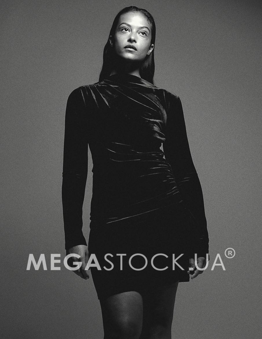 Коротка, приталена сукня з м’якого трикотажу з високим вирізом, довгими рукавами та зібраними швами на одному плечі та збоку для м’якого драпірування