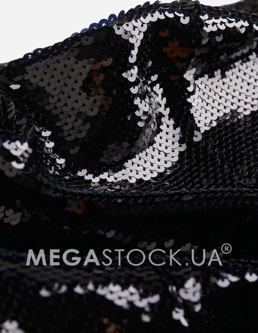 Коротка, облягаюча сукня-бандо з блискітками-джерсі з прихованою силіконовою обробкою зверху для фіксації. Прихована блискавка та застібка на гачок ззаду