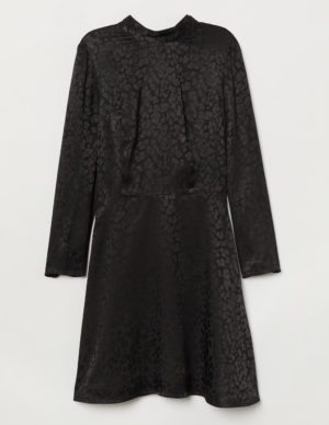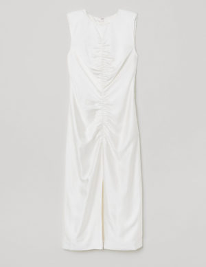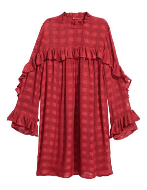 Сукня довжиною до коліна з коміром стійкою із суміші бавовни. Короткі рукава, пояс на талії