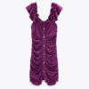 Довга сукня з глибоким V-подібним вирізом горловини в квітковий принт. Еластичний пояс, волани внизу