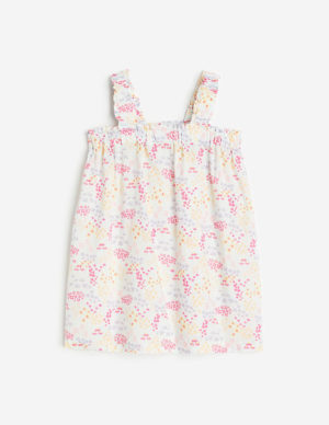 Сукня без рукавів із бавовняного трикотажу з принтом. Зібрані шви на талії та розкльошена спідниця
