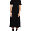 Коротка сукня з м’яко драпірованого атласу з коміром та запахом спереду з широкими зав’язками з одного боку та вузькими прихованими зав’язками з іншого. Злегка спущені плечі, довгі рукави та широкі манжети з розрізом та ґудзиками. Еластичний шов ззаду на талії. Без підкладки