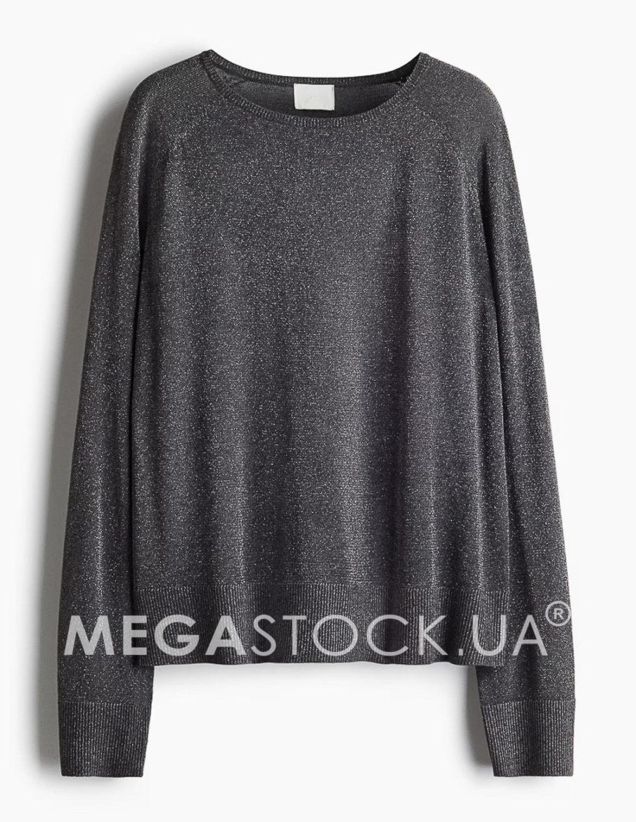 Светр вільного крою з прозорої тонкої в’язки з блискучими нитками. Має круглий виріз горловини з ребристою обробкою та довгі рукави-сіделки. Широка ребриста обробка на манжетах та подолу