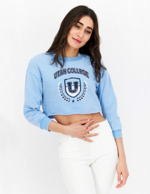 Світшот з бавовняної суміші з принтом спереду та м’яким начісованим внутрішнім шаром. Круглий виріз горловини з ребристою обробкою, низько занижені плечі, довгі рукави та ребриста обробка на манжетах і подолу