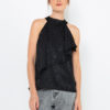 Топ в квітковий принт із зав`язкою спереду. Глибокий V-подібний виріз горловини. Оборка спереду та знизу