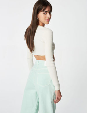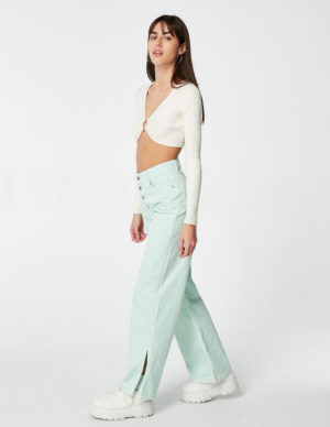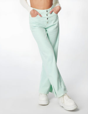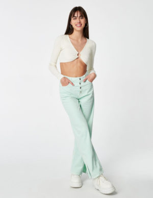 M LШирокі джинси з п’ятьма кишенями. Знизу мають бокові розрізи, застібаються на ґудзики спереду